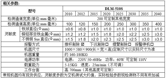 產(chǎn)品名稱:DLM-510S觸屏式全金屬檢測機(jī)200系列一款數(shù)字式金屬檢測機(jī),用于檢測非金屬材質(zhì)瓶裝產(chǎn)品中常見的金屬異物,采用歐美及食品標(biāo)準(zhǔn)設(shè)計(jì),整機(jī)設(shè)計(jì)符合食品機(jī)械要求,適合連接流水線檢測作業(yè)。